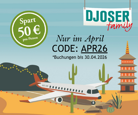 Mit Djoser Family erlebt ihr den perfekten Familienurlaub mit Kindern. Unsere Familienreisen bieten eine ideale Mischung aus Abenteuer und Komfort und stellen die Bedürfnisse und Wünsche von Kindern in den Mittelpunkt. Auf einer Rundreise mit Kindern entdeckt ihr gemeinsam neue Länder und Kulturen - immer begleitet von erfahrenen Reisebegleitern, die für Sicherheit und Spaß sorgen. Verbringt unvergessliche Momente und bucht jetzt euren nächsten Familienurlaub mit Kindern bei Djoser - für eine Reise, die allen in der Familie Freude bereitet. Um einen Familienurlaub zu buchen, durchstöbert einfach unser Angebot und wählt aus unseren Familienreisen die Rundreise mit Kindern aus, die euch am meisten interessiert. Wir bieten Familien Reisen in Europa, Asien, Mittel- und Südamerika, Afrika, Nordamerika und im Orient an. Wenn ihr mehr über eine bestimmte Familien Rundreise erfahren möchtet, klickt einfach auf die jeweilige Reise und ihr könnt euch die Route und den Tag-für-Tag-Verlauf im Detail ansehen. Dort findet ihr anschließend auch die Abreisedaten sowie die Möglichkeit, euren Familienurlaub zu buchen.