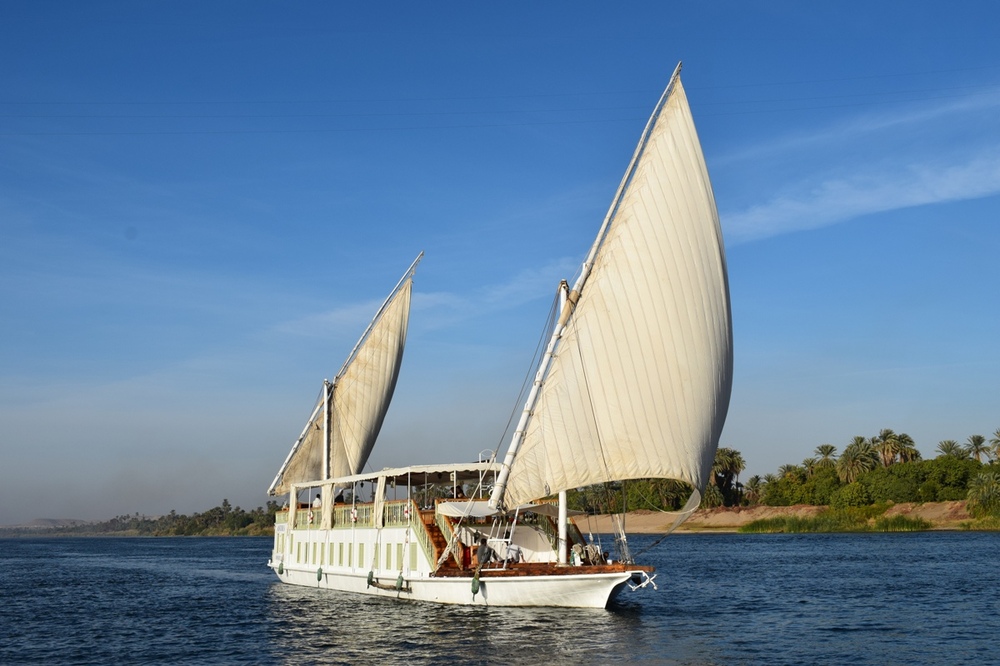 Die Übernachtung auf dem Nil findet an Bord einer Dahabiya statt. Hier übernachtet ihr in Doppelkabinen, die jeweils mit eigenem Bad ausgestattet sind.